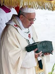“When we entered the chapel,” the Orthodox archbishop said, “Pope Francis explained to me that Pope Paul VI wanted to keep a part of the relics of St. Peter from the Vatican Basilica in his private chapel.”Peter was martyred in Rome. When he was leaving Rome to avoid martyrdom Christ appeared in a vision and told Peter He was going to Rome to be martyred in his place. So what is the significance of this pope rejecting both the opportunity to pray before the relics of St. Peter and sending the remains of St. Peter away from Rome. Is this a judgment on the "holy city?" The reporting above makes it sound so cavalier, as if Pope Francis doesn't value the relics at all. In view of his past contempt for spiritual bouquets and other pious practices, one can reasonably ask whether he believes relics have any value? What does he value more: the relics or the stang presented to him at World Youth Day?